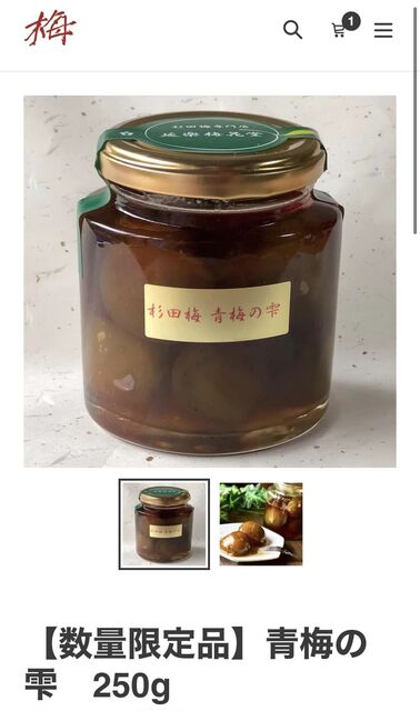 杉田の青梅を梅果汁などで煮詰めた後数ヶ月漬け込んだ逸品です。青梅のみが入っています。