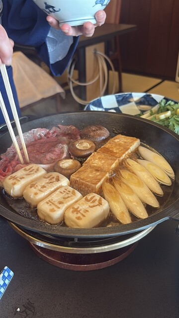 すき焼に適した厚みとこだわりの肉質で口に入れるととろけるようなお肉は