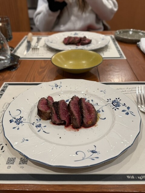 メインはお肉をチョイス☝️このお肉めちゃくちゃ柔らかくてジューシーで何もつけなくても最高やけどお塩付けたりバルサミコソースで味変もあり♀️✨️