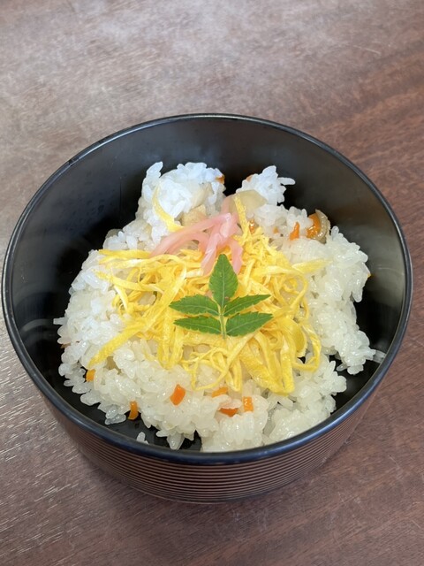まずはちらし寿司が配膳。味は普通...。炊き込みご飯が食べたかったけど売り切れだったのが残念...。