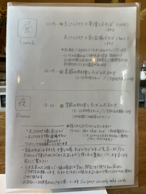 天ぷら付き+割り釜揚げそば(hot)1,890円 現金払いのみ可