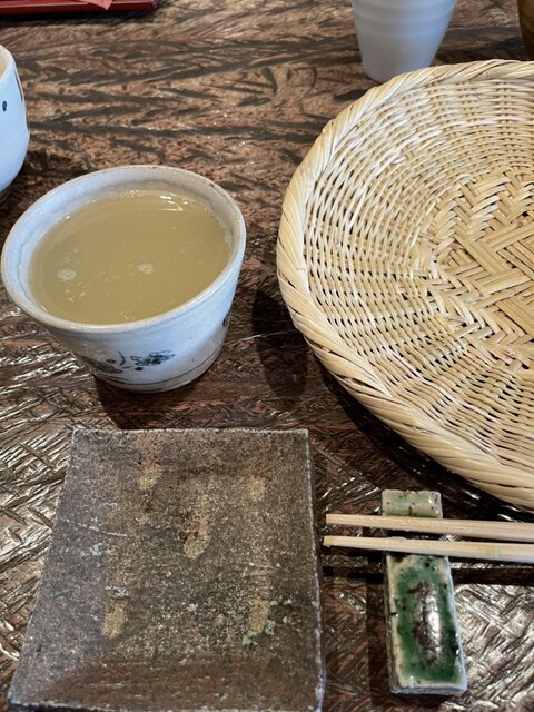 そばにわさびを少し乗せて下を汁に漬けていただきました。