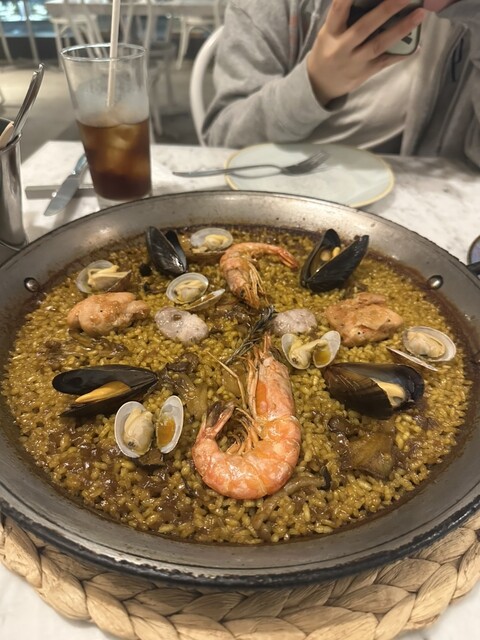 三連休の今日ですが、お店の客はあまり多くなく、結構静かでした。スペイン風海鮮パエラを注文しましたが、なかなか美味しかったです。バスクチーズケーキも美味しかったです。他の二品もまずまずの味でした。白ワインもなかなか良かったです。