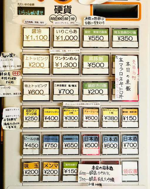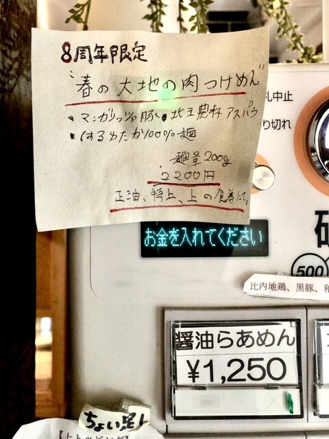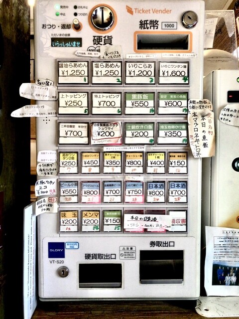 12:03に店に戻り〜暫し椅子で待ち、12:16に厨房横の窓から深谷さんに「こたつさ〜ん」と呼ばれ店内すぐにある券売機で食券を購入。
