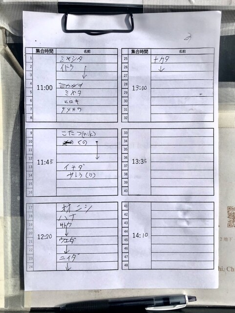 前回で分かった、ワンオペ際は8枠×6で48名、2人体制の時は8枠×8で64名、今日2023.1107は新しい助手さんと2人体制でした。