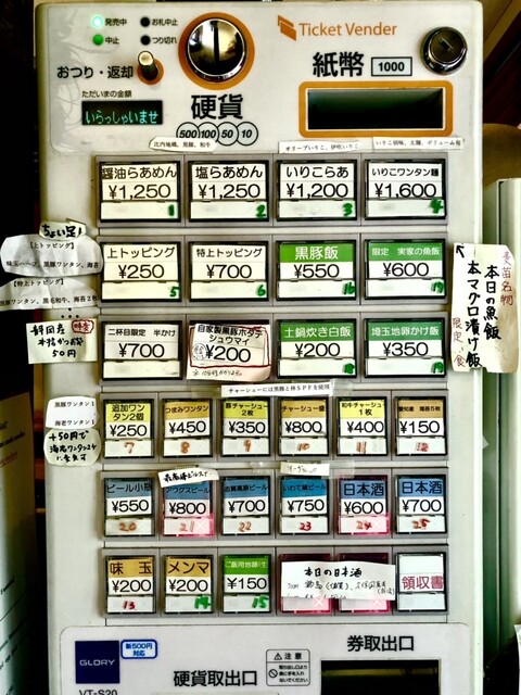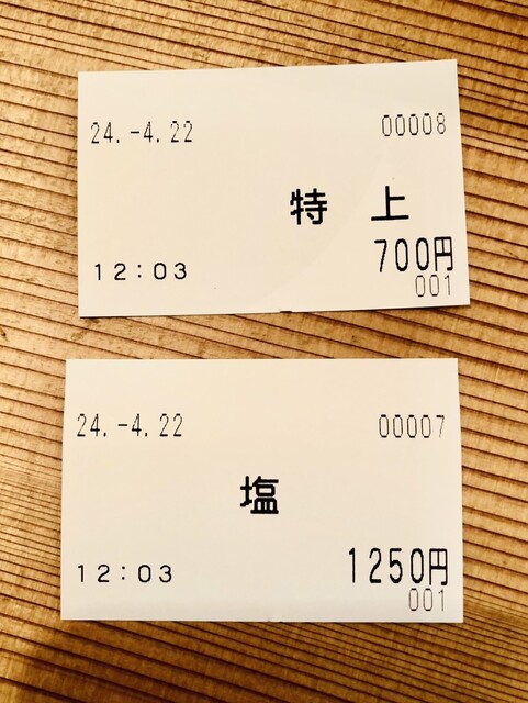 と言っても券売機に「特上塩らあめん」のボタンはないので、正式には「塩」の「特上トッピング」。要は券売機で「塩」と「特上トッピング」を購入します。