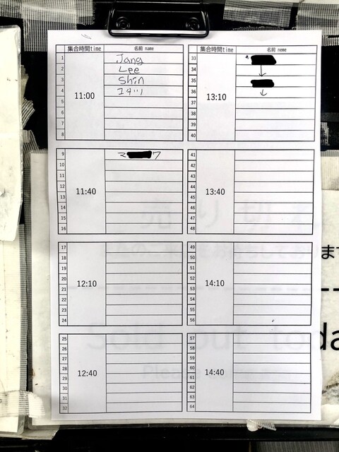 月曜は比較的緩め、けど2~3名で取る人もいるので記帳開始直ぐに左列は概ね埋まる。と思ったら10/2は8枠×6で48名だったんだけど、8枠×8で64名に増えてた。