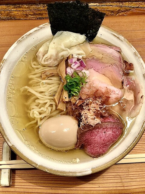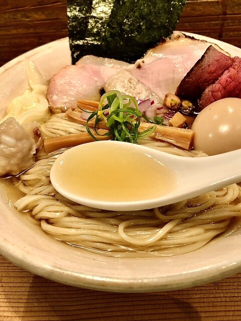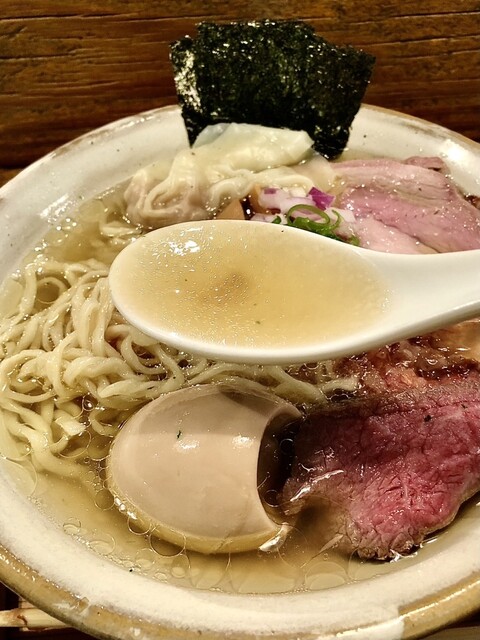 淡く繊細で豊富なミネラルを感じるような塩ダレに乾物等と動物が重なったスープ。