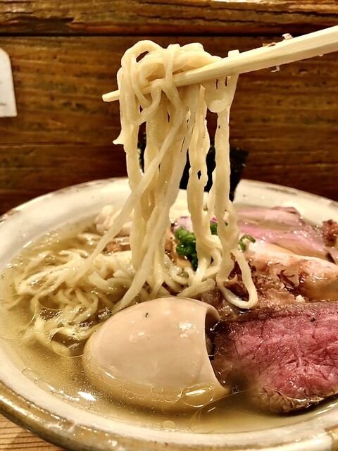 塩は1年振りくらい、あっさり奥深く繊細なスープに程良い動物系も感じられ透明さも綺麗でめちゃくちゃ上質な塩、旨〜い❣️