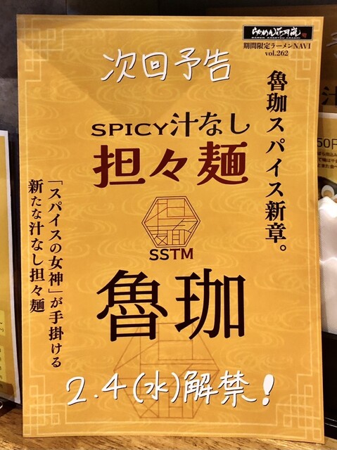 12/8(月)以来、旧店舗と合わせて44回目の魯珈さん。魯珈では毎週水曜日に限定が登場。