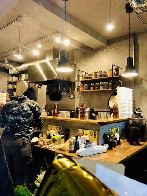 ここに自家製辣油とスパイスで和えた豆苗ネギ水菜の「辛ヤサイ」が重なり、旨味と辛味を一段上げているかのよう◎