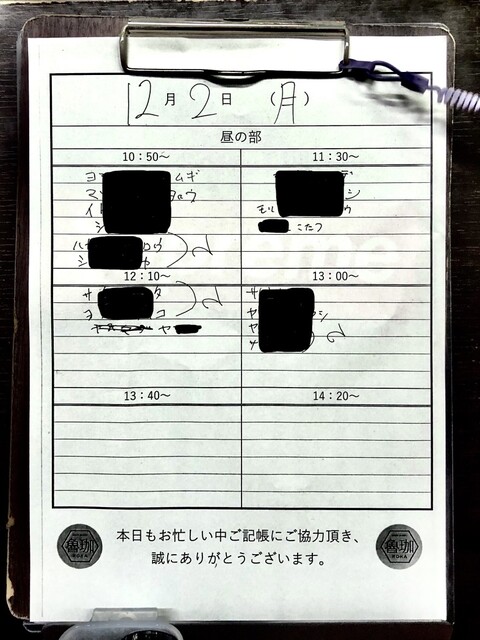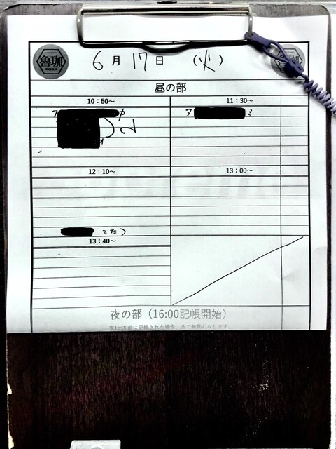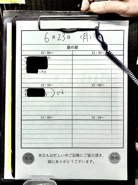 09:37 魯珈X「23日(月曜日)本日の部の記帳を開始させて頂きました!残りのお席、1300~1名様、1340~3名様、1420~4名様のご案内となります」