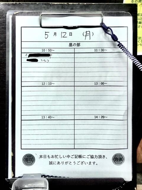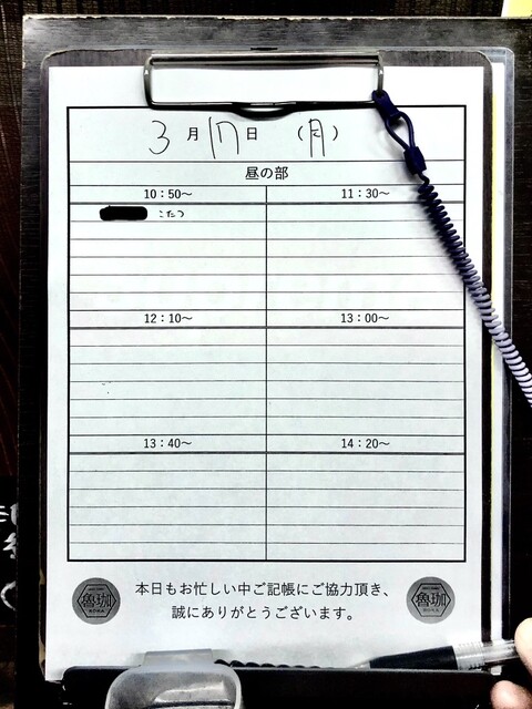 09:33 魯珈X「11日(水曜日)本日の記帳を開始させて頂きました!残りのお席1340~1名様、1420~5名様のご案内となります(^o^)ゞ」