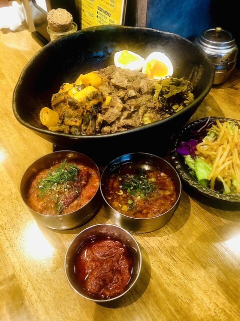 《☆限定カレー☆7周年記念!狂辛ビーフカレーx☆限定カレー☆あさりダールの2種カレー》