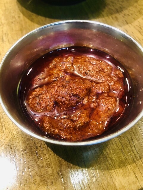 薫り高き旨味の中にしっかりスパイシーさもあり、炒め赤玉葱の甘味とビネガーの甘酸感がアクセント、此方もめっちゃ美味‼︎