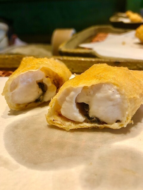 ・河豚の白子、トリュフの湯葉巻