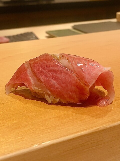 こはだから始まる握り、今日は感覚的に先に大とろから赤身漬けの流れにしたそう。
