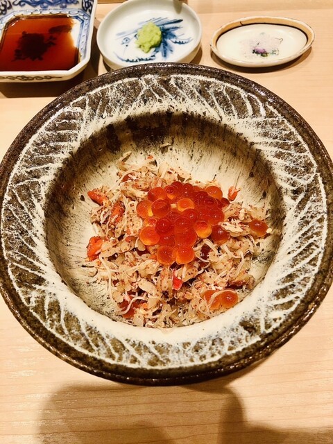 ◇いくらを添えたせいこがにの酢飯