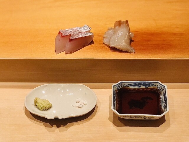 コースまでで腹八分目くらいだったので追加可能なネタから魚2貫を追加。