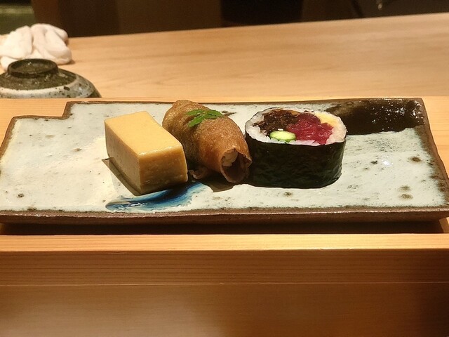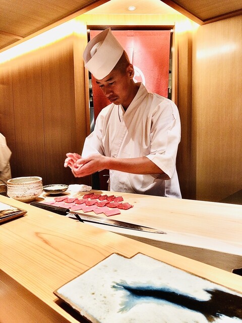 2018年6月2日オープン。「鮨さいとう」プロデュース x「LDH」オーナーによる都内人気鮨店の1軒。店舗空間の設計から器選びまで齋藤孝司大将が手掛けられています。