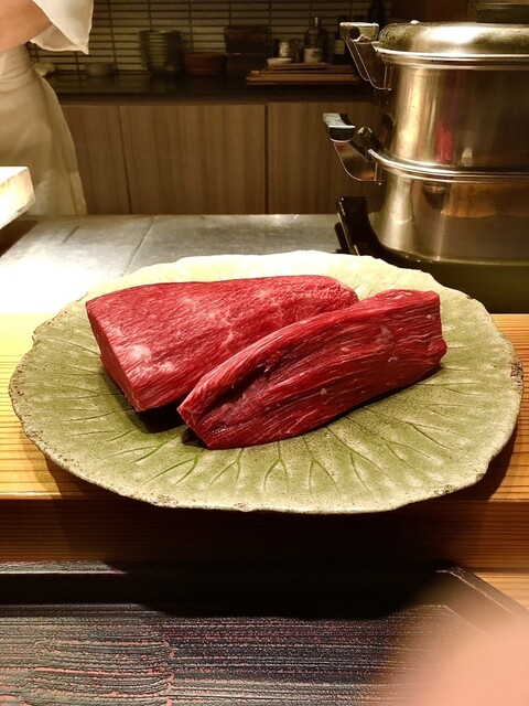 大久保丈太郎シェフの元、和牛はより赤身肉の凝縮した旨みを求め、一般的な黒毛和牛より肥育期間の長いものを扱い、様々な部位を用いて会席の流れで「肉割烹」として楽しめる名店。