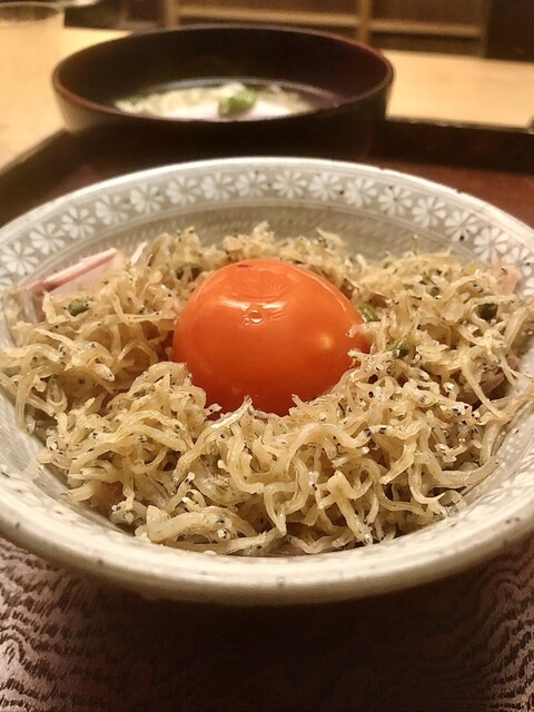 ・ちりめんじゃこの山椒丼 卵黄乗せ