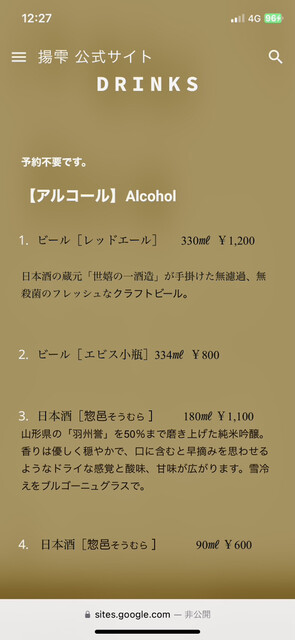 10/18(土)の夕方に揚雫のTableCheckを見ると今日10/31(金)の12:30枠が1席空いてるー!予約完了~‼︎ 予約時にメニューも決めます。