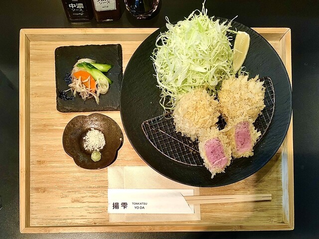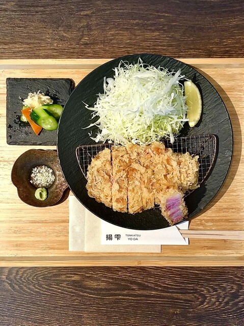 国内のとんかつジャンルで4Pを超す3店の一角、4.25のとんかつ成蔵、4.21のとんかつ マンジェ、そして4.12の揚雫で当店の読み方は「ヨーダとよんでください」「Y O D A」、また「タイパ、コスパ重視、濃い味、豊富なメニューなど所謂トンカツ感をお求め/ご希望の方には当店はお勧め致しません」との事。