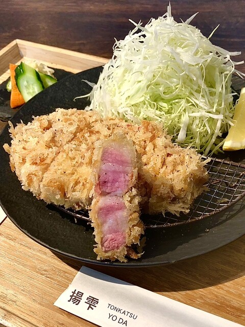 揚雫の読み方は「ヨーダとよんでください」「Y O D A」、また「タイパ、コスパ重視、濃い味、豊富なメニューなど所謂トンカツ感をお求め/ご希望の方には当店はお勧め致しません」。