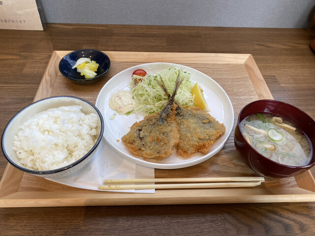 数種類の定食の中から境港産アジフライ定食をいただきました。