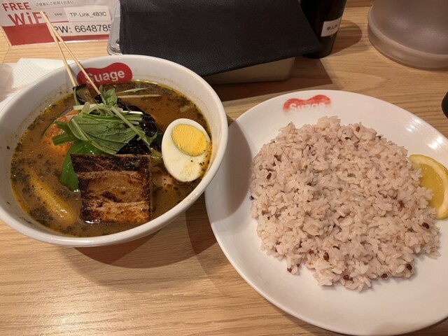 上司から「めちゃくちゃうまいから」と紹介されついに入店。初めてのオーダーは角煮と野菜のスープカレーと食後にマンゴーラッシーにしました。ご飯は雑穀米で少し少なめかと思いきや、、、野菜がゴロゴロ、角煮のボリューム満点。そしてなんといってもスープが美味しすぎる。何種類ものスパイスと、玉ねぎと思われる煮込まれた野菜の甘みが詰まったご飯と野菜が進む最高のスープカレーでした。マンゴーラッシーも濃厚で食後の口直しにぴったりでした。リピート間違いなしです。