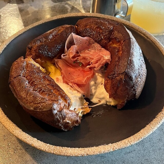 サルシッチャのクリーム煮込み スコーン付き ¥1,380 ダッチパンケーキ 生ハムとブッラータ ¥1,960 和歌山県産みかんジュース ¥830