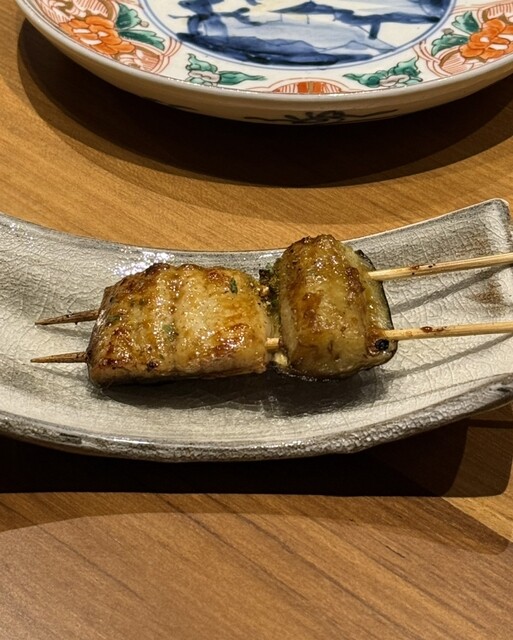 焼物で登場したのは"鰻と茄子の焼き鳥"。じっくり焼かれた鰻に、山椒と青のりを合わせたオリジナルブレンドの七味がまた秀逸。皮目はパリッと身はフワホワ、、、炭火の香りを纏った茄子も甘くて主役級。