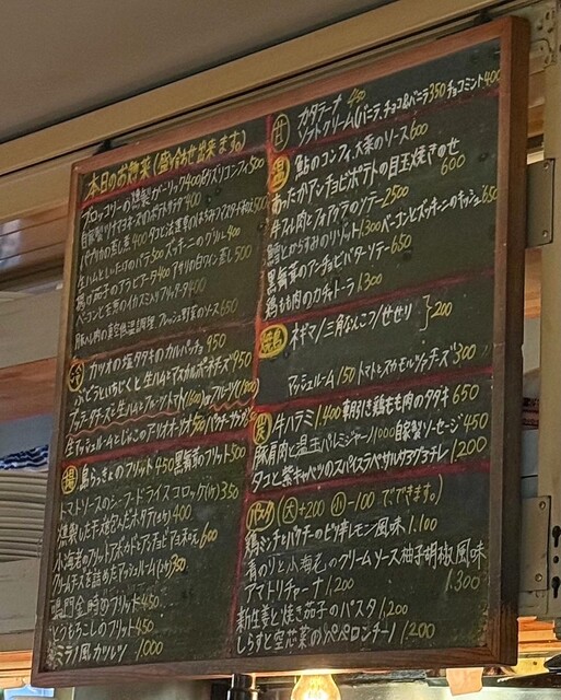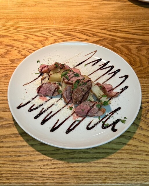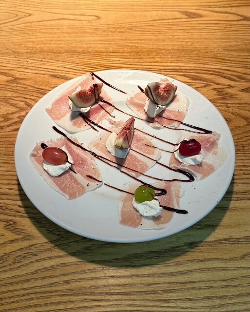ぶどうといちじくと生ハムとマスカルポーネ ¥950 生ハムとしいたけのパテ ¥500 生マッシュルームとじゃこのアーリオオーリオ ¥500 燻製したチーズを包んだホタテ(1ヶ) ¥400 カモムネ肉 ¥1,000 とうもろこしのフリット ¥450 青のりと小海老のクリームソース柚子胡椒風味 ¥1,300 しらすと空芯菜のペペロンチーノ ¥1,200 ガーリックトースト ¥200