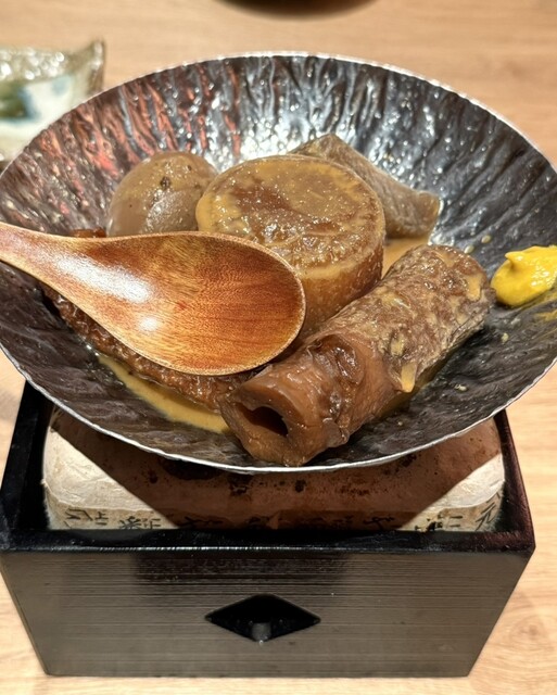 メニューが豊富やったので、この日はアラカルト利用で!いろいろ頼んでどれも美味しかったけど、特にお気に入りは、お出汁しみしみの白味噌おでん/柚子のアクセントが合う春巻き/フワフワだし巻き/担々麺っぽいピリ辛のラーメンサラダ。
