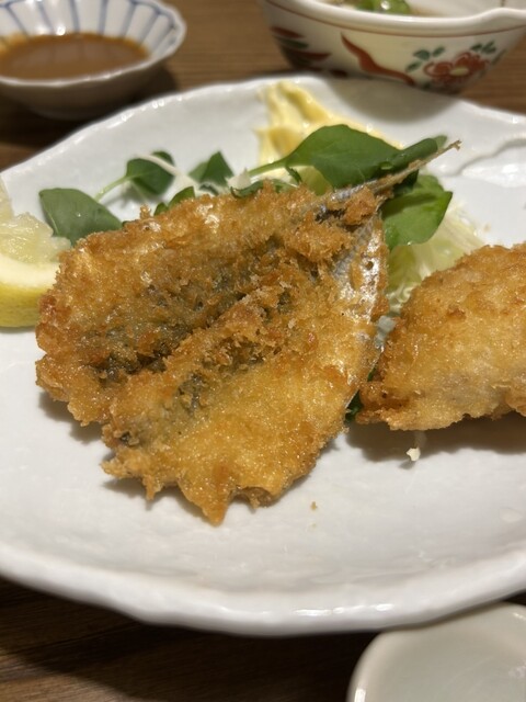刺身はプリプリ食感と旨みで、アジフライなんてこんな肉厚、しっとり、ジューシーなのがあるのかと!!京都市内では出会えないくらいのプリプリ、旨みたっぷりで、これアジですかって感じでした。