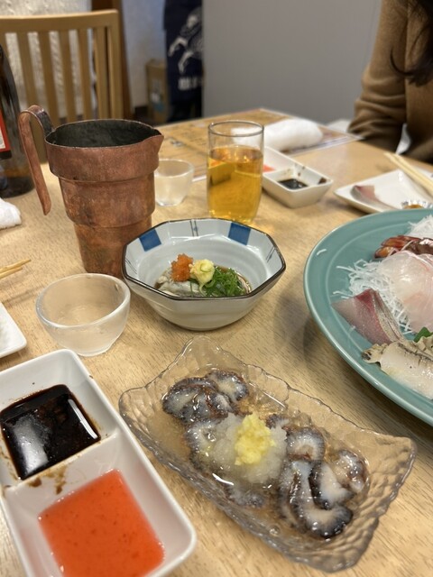 他にもナマコ酢、酢ガキ、バイ貝旨煮、クモコ天、鯖寿司を最初にオーダーし、テーブル上は海鮮天国状態^o^