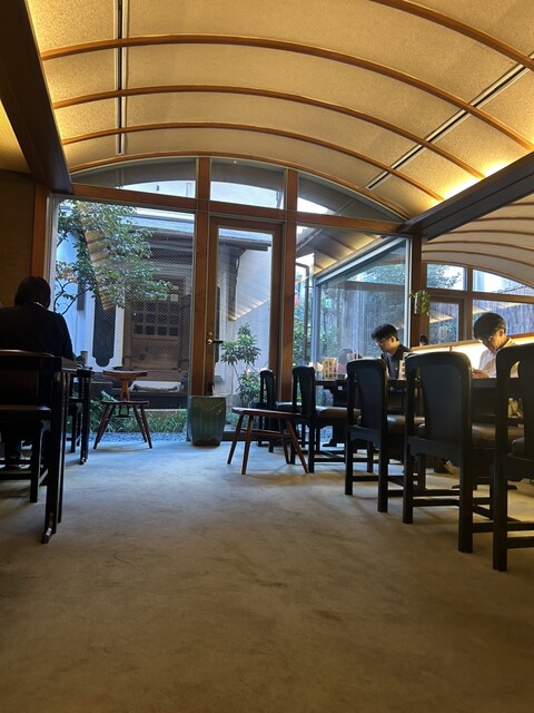 奥まった先に、こんな広い空間があったんやーと、改めて驚きとその先に見える中庭の景色に時代を感じずには要られません。