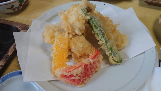夫と息子は天せいろで田舎そばの大盛り、私と娘は3色天せいろ。