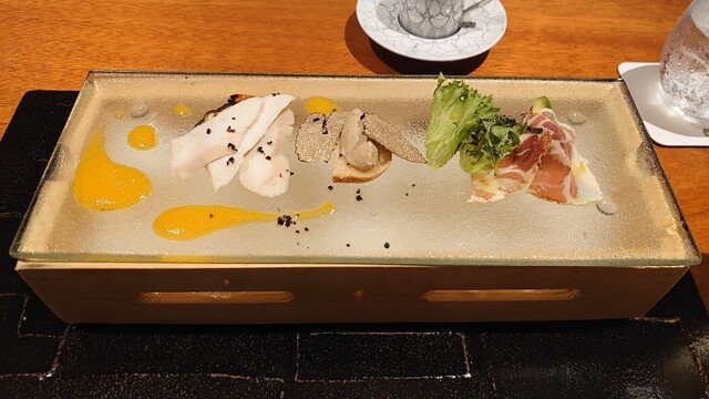 昨年より鉄板焼きが選択できるようになり、少しプラス料金となりますが、選択してみました。落ち着いた雰囲気でカウンターでの食事、、、目の前でフレンチ出身のシェフが焼く鮎、海老、牛フィレとサーロイン、締めはガーリックライス。