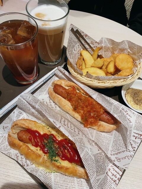 ホットドッグののパンはモチっとしてパリッと太めのフランクに合う。美味しい。