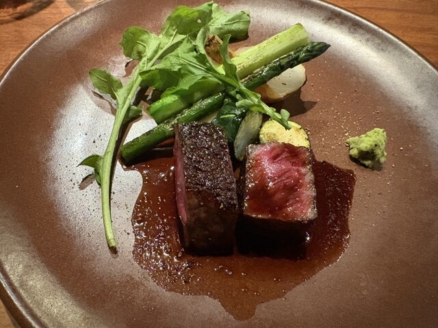 和牛は、外はカリッと、中はジューシーで美味しかった。比較的赤身の部分が多く食べ応えがあった。