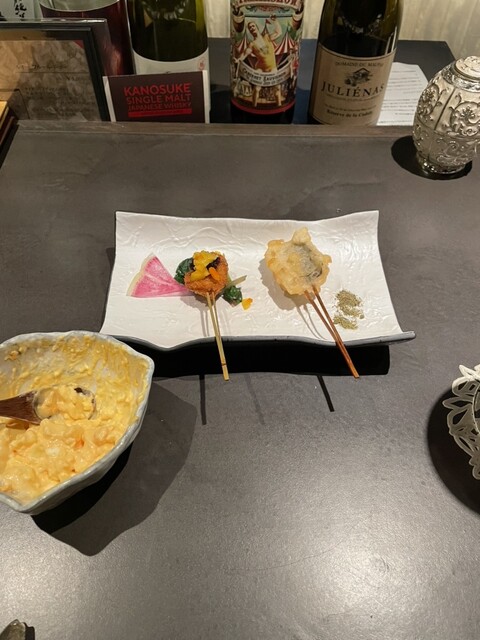 季節のスープ、和歌山彩り野菜、牛テール出汁茶碗蒸し、創作串揚げ、お口直し、一口すき焼き、鉄板焼きオーブンバーグサンド、鯛だし茶漬け(別途600円) どれも最高に美味しかったです