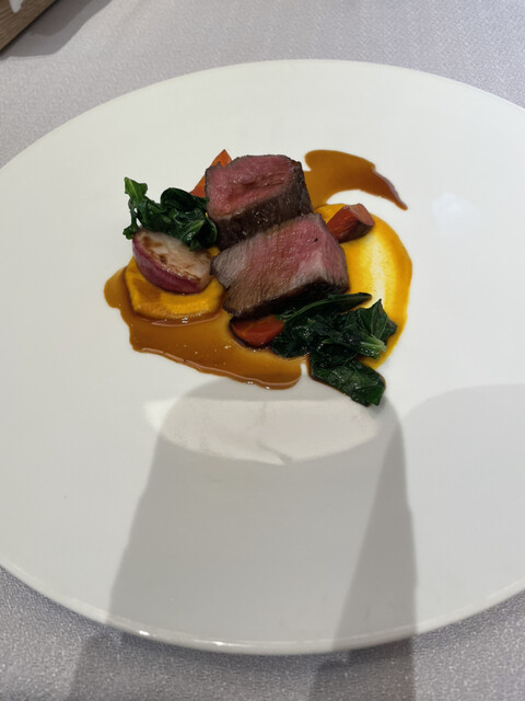 本日の魚料理、メインの肉料理➕1800円で神戸牛のステーキ デザートといったコース 年とともにフレンチが重く感じてきていましたが、凄く美味しく最後まで食べれました 最高の空間、おもてなしいいランチをいただけました