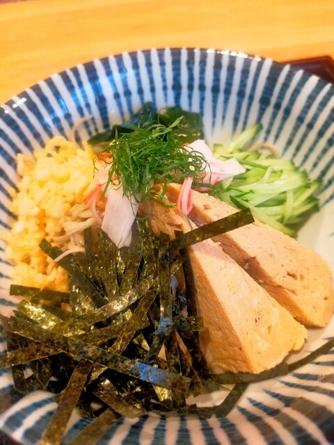 冷やし五目蕎麦···更科蕎麦でツルツルとした食感です。