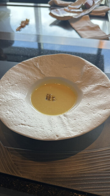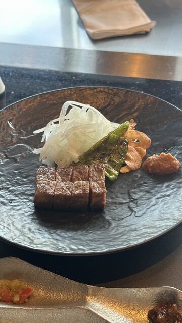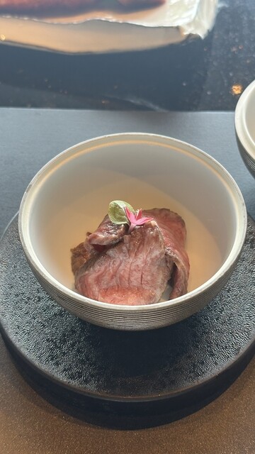 最初の瞬間燻製の低温調理牛から印象的で、香りと柔らかさが楽しめる一品でした。
