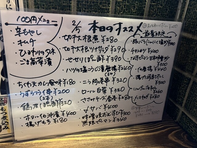 メニュー見てびっくりですが、一つ一つ、安すぎ!今時百円のおつまみとかある⁈ハイボールも200円!