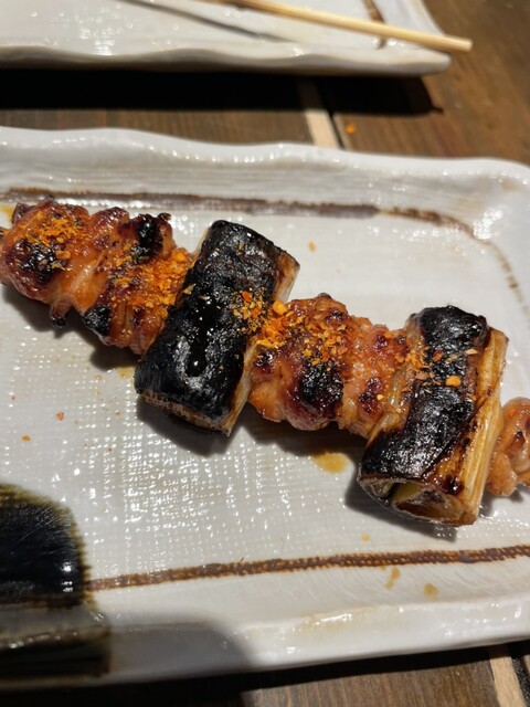 一品料理は、茄子の一本焼きをオーダーしました。焼き鳥の炭でじっくり焼いた茄子は、しっかり皮が剥かれ、食べやすい大きさに切られたジューシーな茄子に鰹節がたっぷり、、絶対に美味しいやつです。