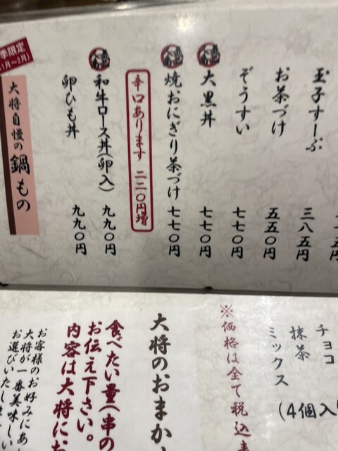 大将はじめ、店員さんもお客さんを第一に気配り頂き本当に素晴らしいです。