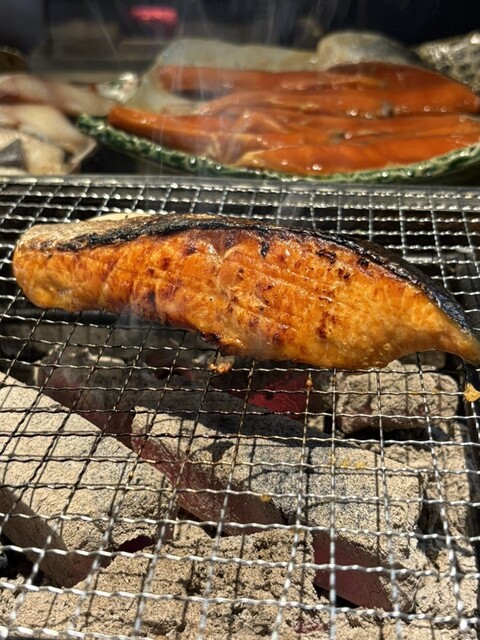 カウンターの目の前で焼いた炭焼きの鮭、釜で炊いたご飯、絶対に美味いと決まっていますが、それを体験出来る、、こんなにワクワクさせて頂ける朝食はないですね。